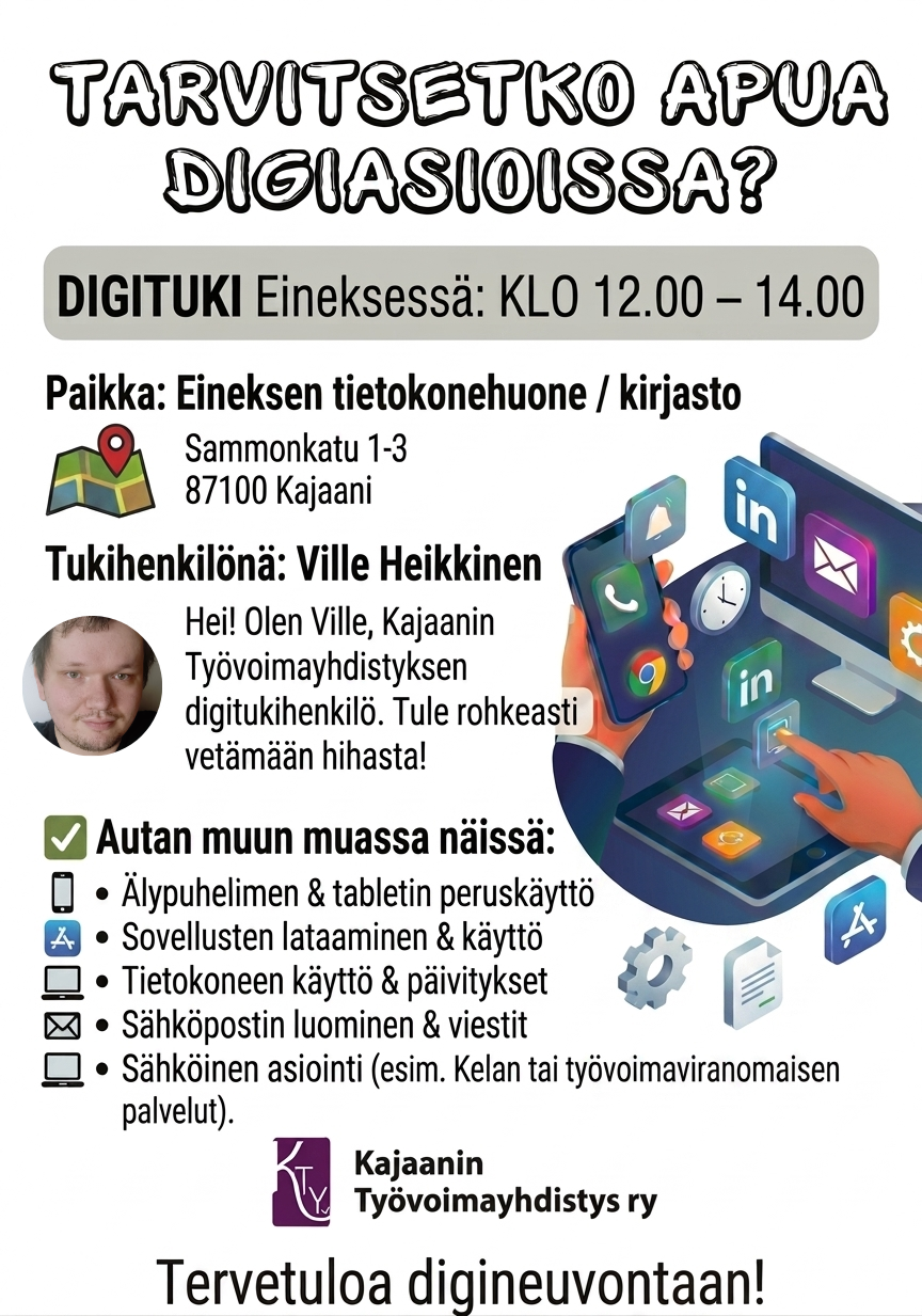 Digitukihenkilö Arto Heikkinen Puhelin: 050 532 2247 arto.heikkinen@kainuunkave.fi
