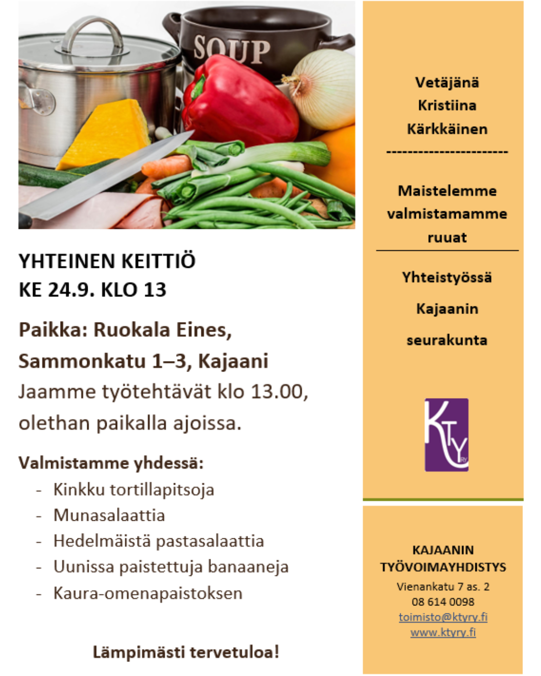 Toiminnan ohjaaja Maria Heikkinen Puhelin: 044 706 1262 maria.heikkinen@ktyry.fi